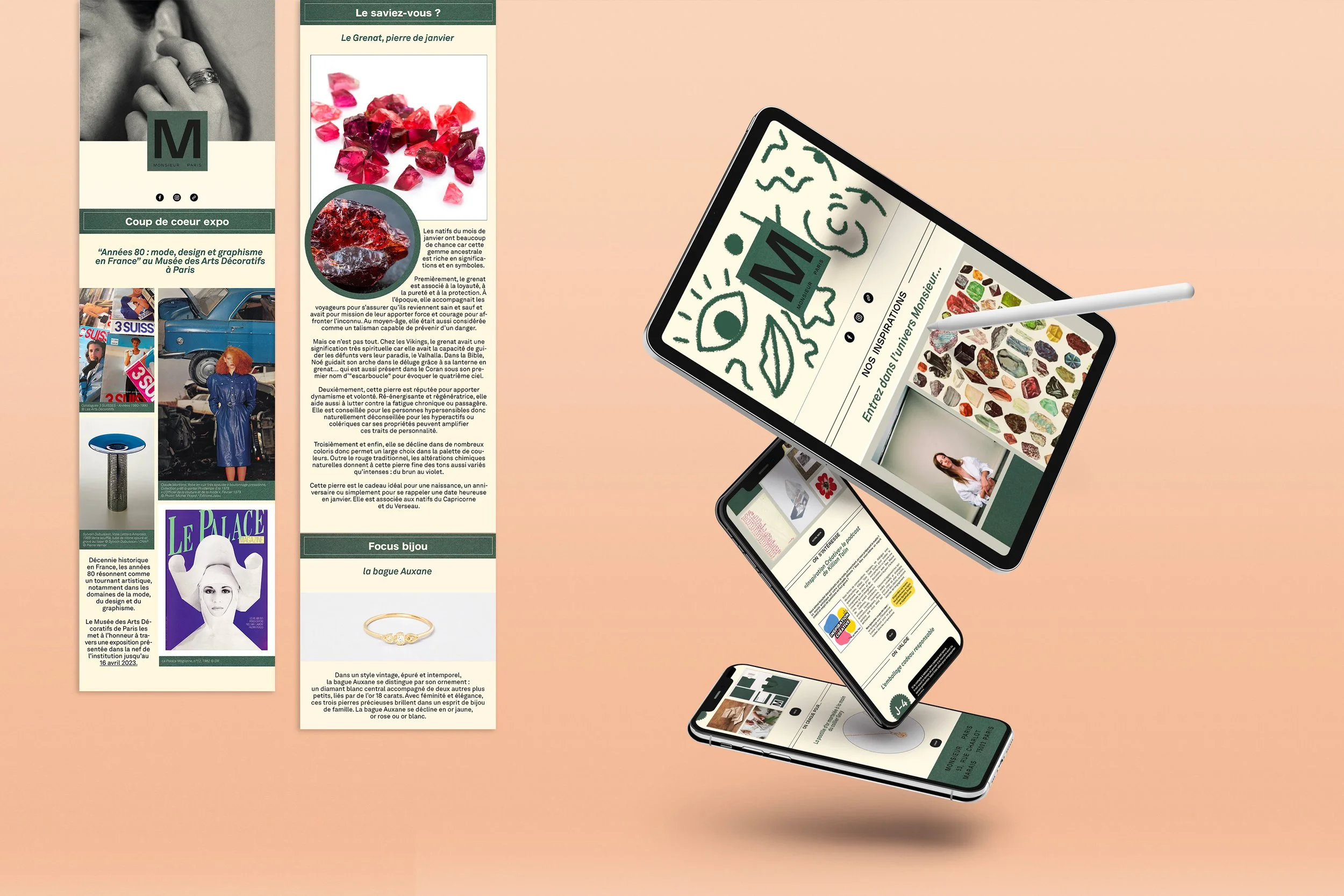Rédaction de newsletters éditoriales et promotionnelles, d’articles de blog et de légendes Instagram pour Monsieur Paris